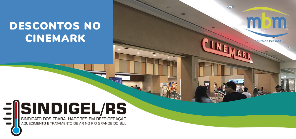 Através dos convênios fechados com a MBM Seguros os trabalhadores do SINDIGEL/RS têm direito de ter 50% de desconto na compra de ingressos para salas comuns da rede de cinemas Cinemark. O valor dos ingressos fica aproximadamente R$ 16,90 para qualquer dia da semana.